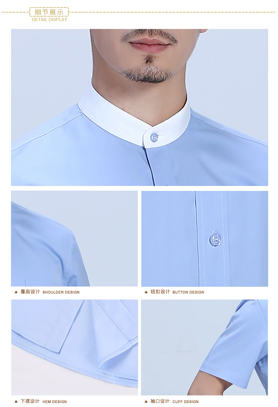 - 標簽:滌棉立領撞色藍色職業襯衫ZL023