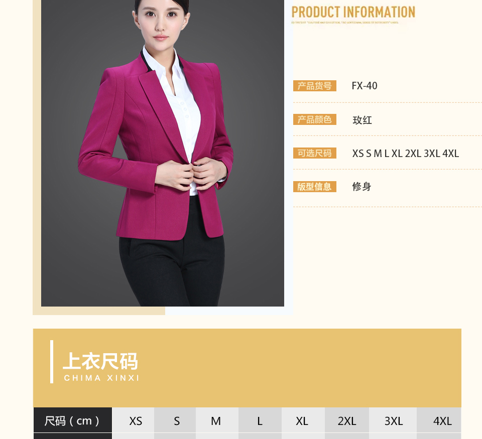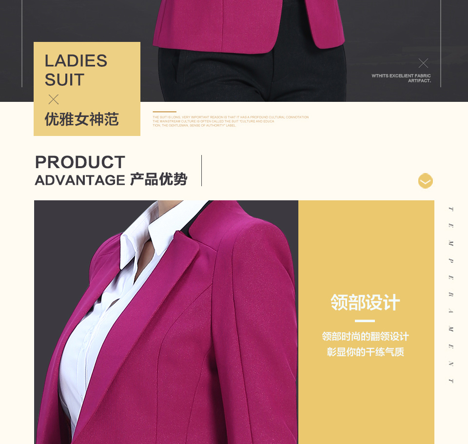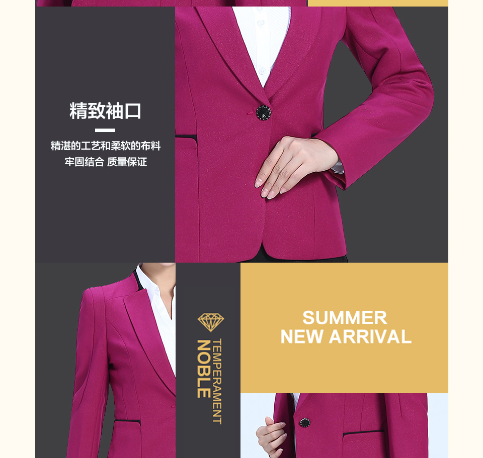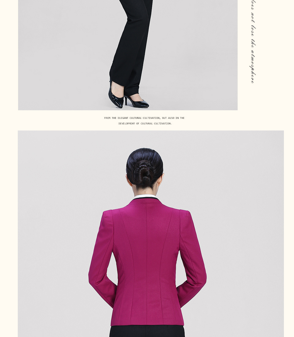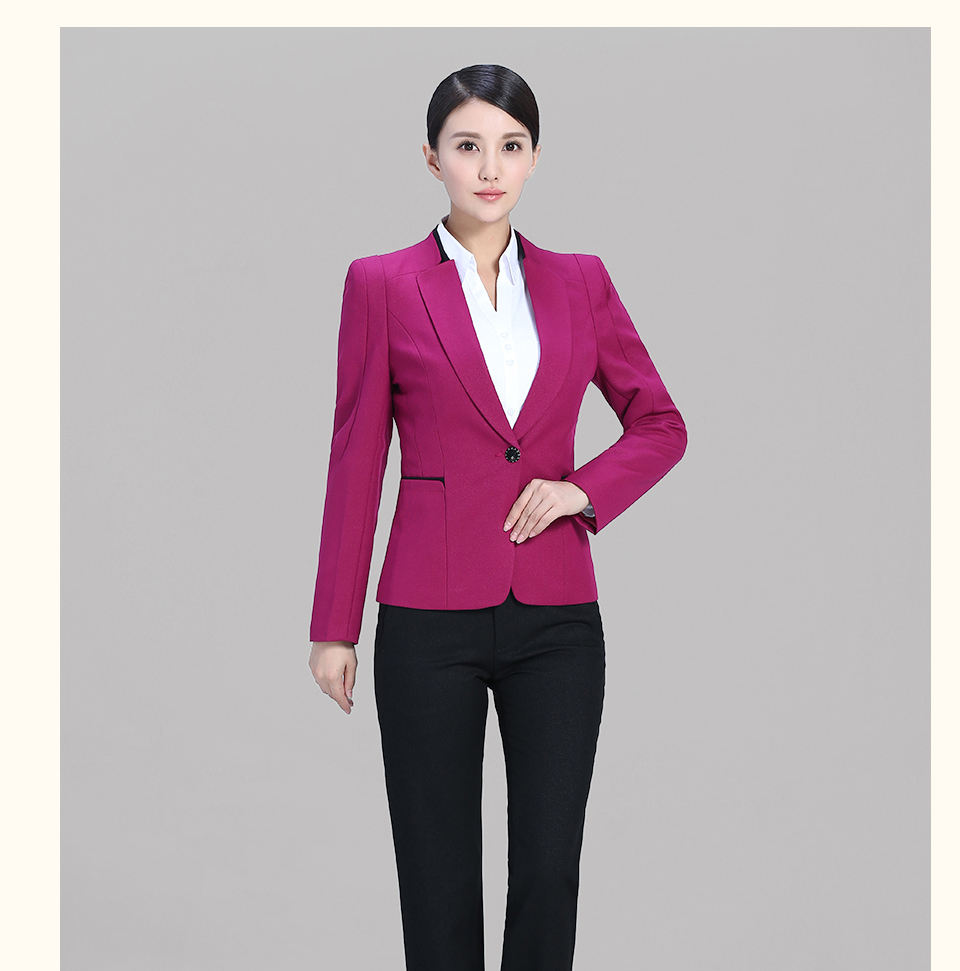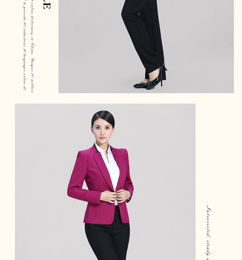 相關(guān)改良版翻領(lǐng)玫紅色時尚職業(yè)套裝FX11推薦
