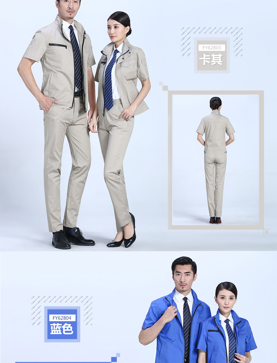 相關(guān)創(chuàng)意拉鏈款夏季滌棉細(xì)斜短袖工作服FY28推薦