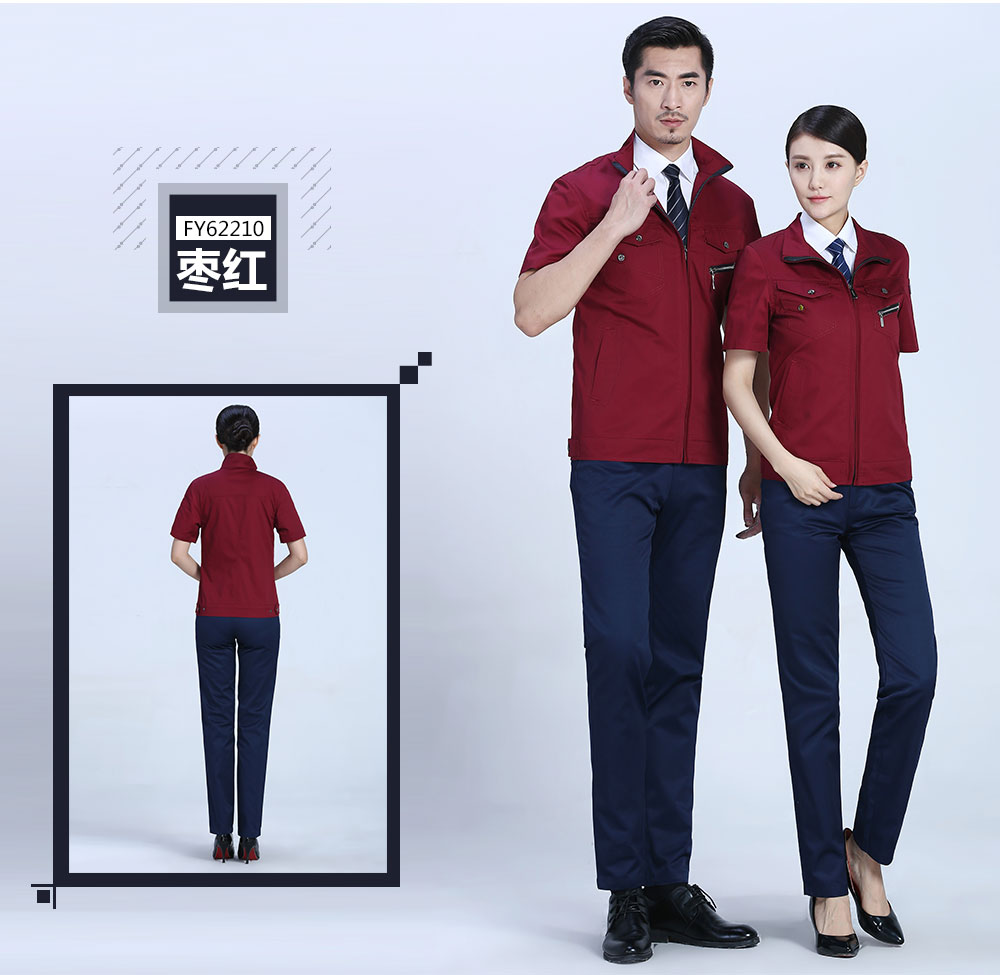 相關(guān)高領(lǐng)拉鏈時(shí)尚滌棉細(xì)斜短袖工作服FY622推薦