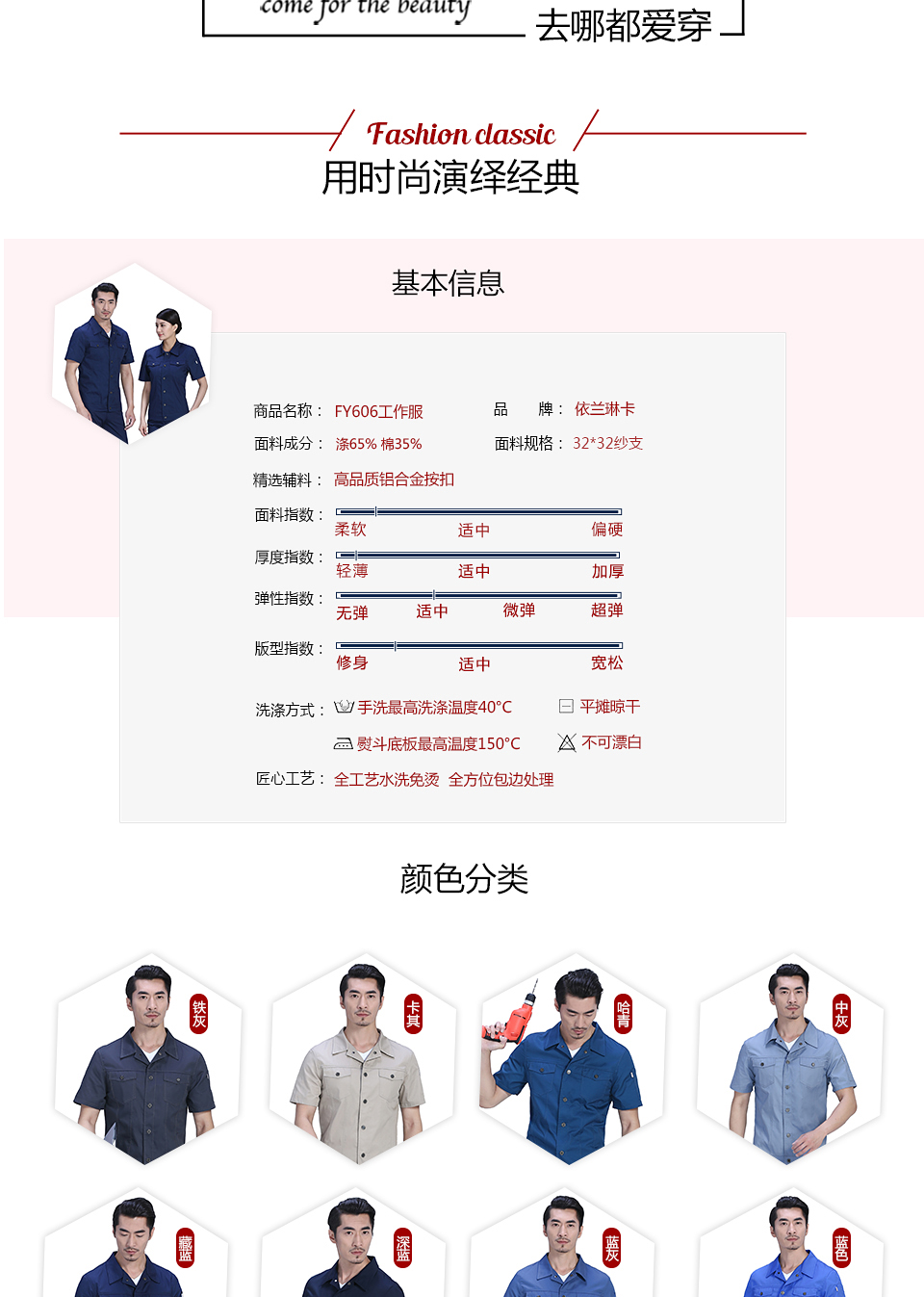 相關夏季滌棉細斜短袖工作服FY606推薦